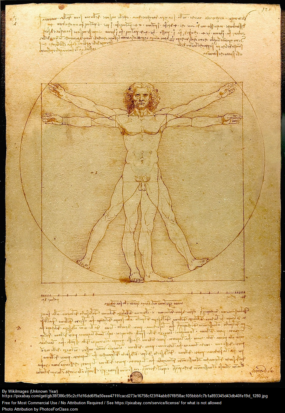 Leonardo da Vinci’s Vitruvian Man, circa 1487 (Creative Commons, Wiki images)